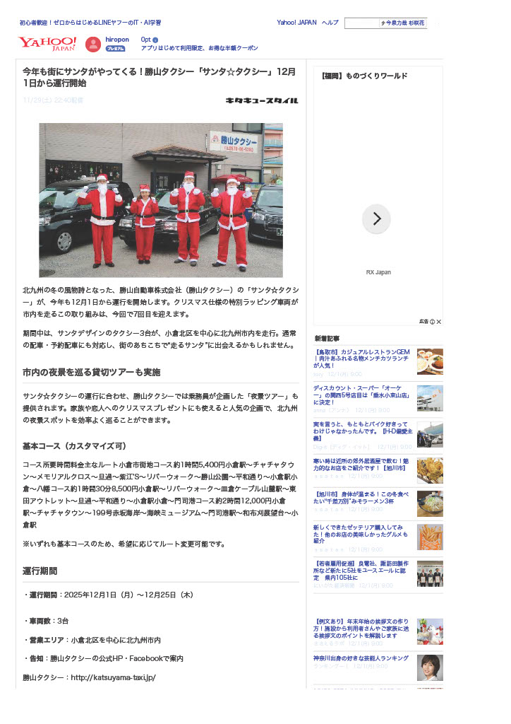 キタキュウスタイル https://kitaq.style/katsuyama_santa_2025/